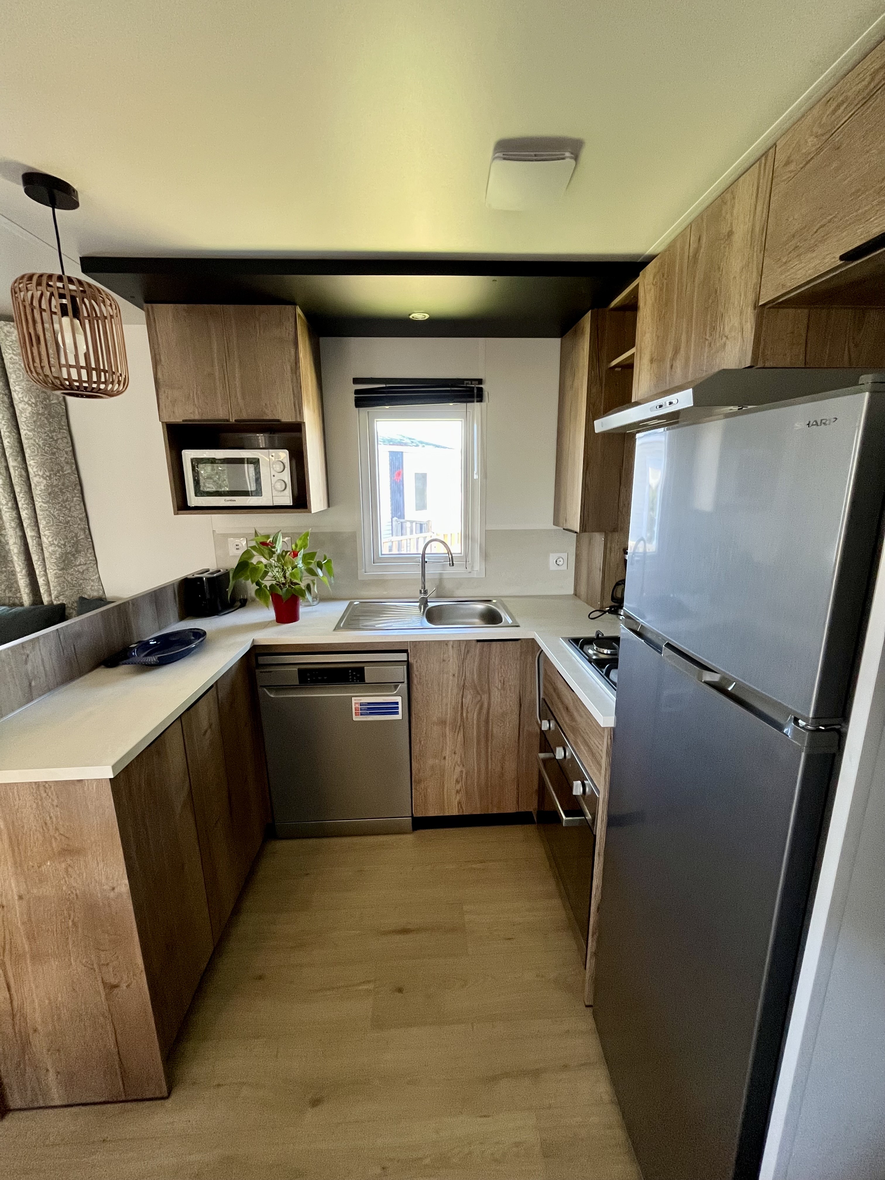 Vivez un séjour tout confort au Camping 3 étoiles Bontempo Village à Piriac-sur-Mer en choisissant le très beau cottage Prestige Grand Confort. Ce logement de 40 m² dispose de 3 chambres et est équipé de tout le matériel nécessaire pour vous faciliter les vacances : four, micro-ondes, cafetière, etc. Draps, oreillers et couvertures sont fournis afin de rendre votre départ plus simple. Une jolie terrasse en bois vous offrira de très bons moments de convivialité et vous permettra de profiter des extérieurs du domaine.