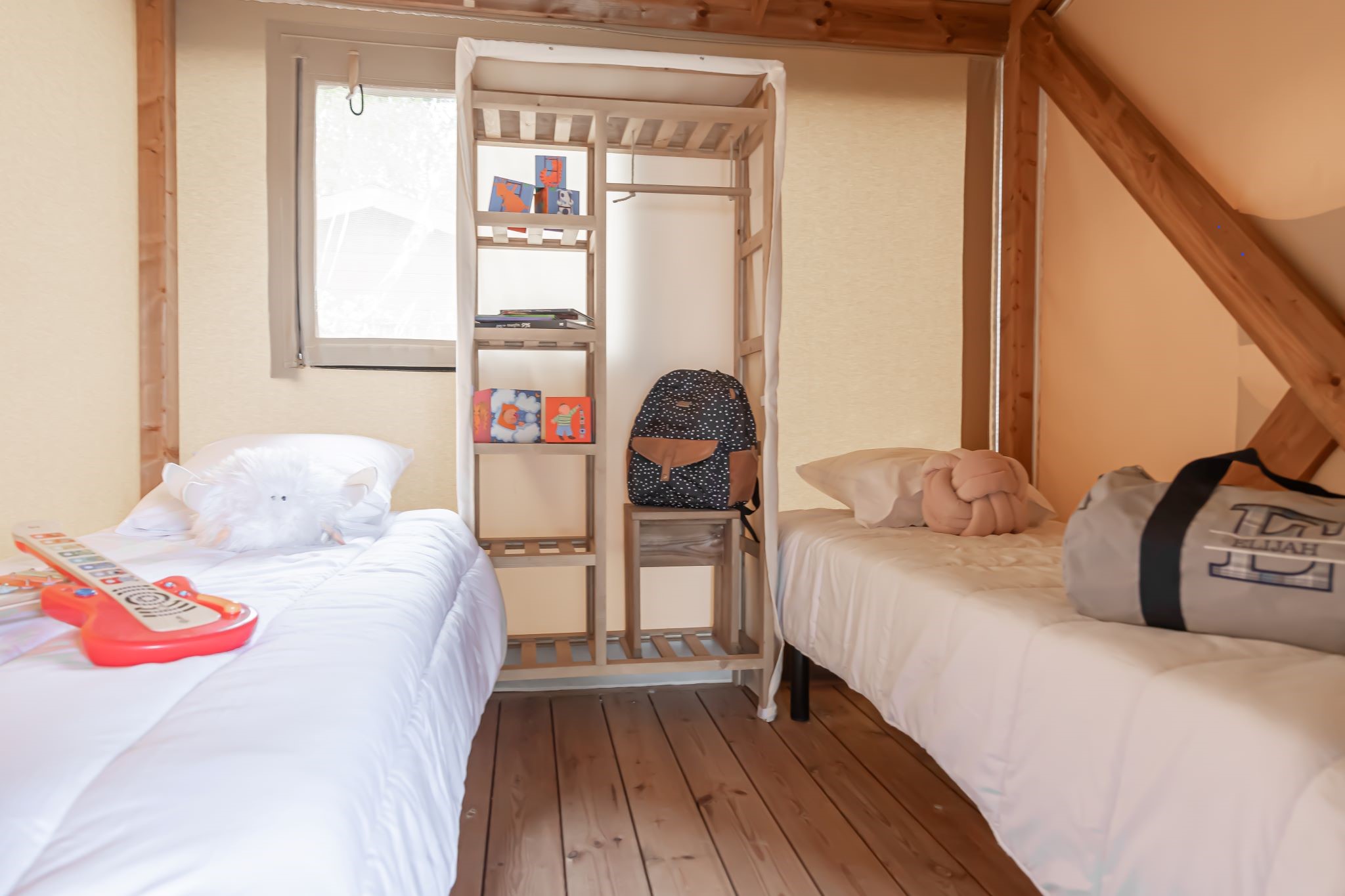 L'emplacement du camping (proche des plages et du centre, encore mieux à vélo), le logement (tente), la propreté des allées, la présence du terrain de tennis, la piscine